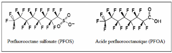 Figure 1 : Structure chimique des PFOS et PFOA; source Research Gate
