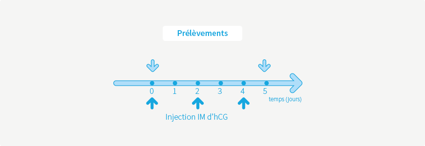 • Injection IM d’une ampoule de 1500 UI de hCG à J0, J2 et J4 à 8 heures
