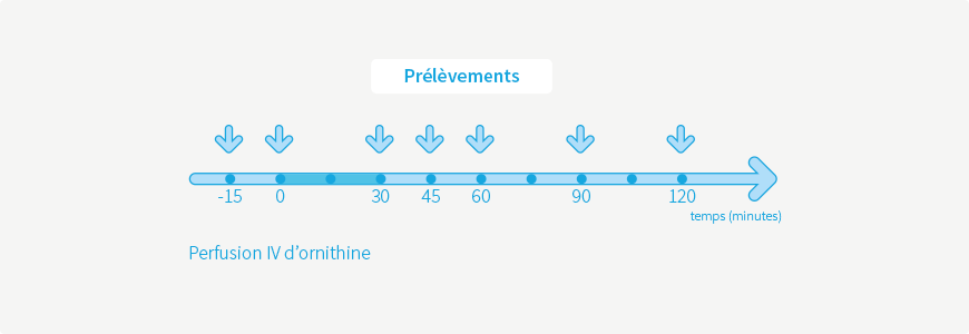 - Perfusion IV stricte en 30 min de la solution d’ornithine.